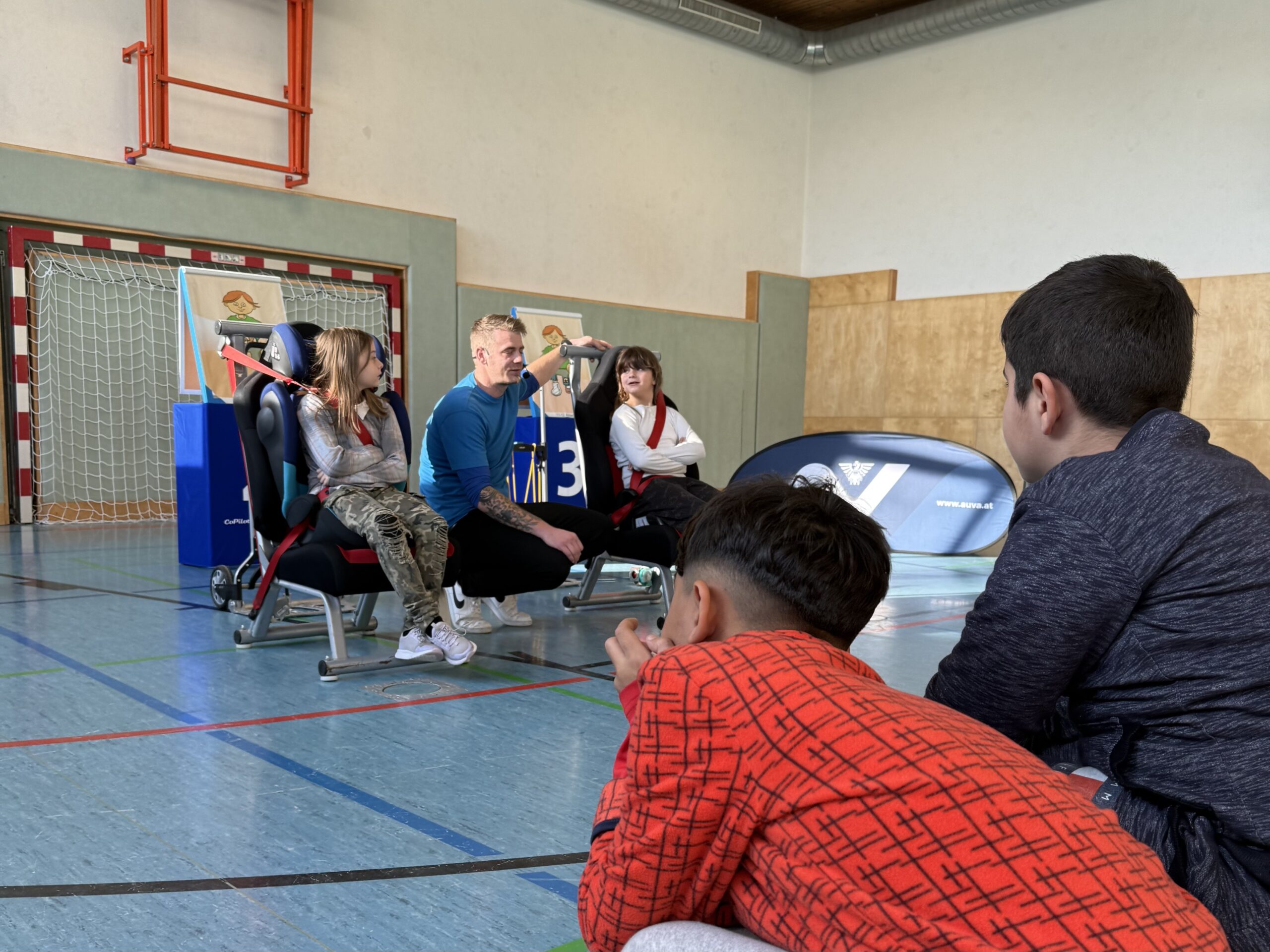 Die Schülerinnen und Schüler wurden nicht nur darüber informiert, wie man sich richtig anschnallt, wie groß man sein muss um keinen Kindersitz mehr zu benötigen und wie sie dieser schützen kann. Mit Spielen, Versuchen und auch schauspielerischen Darstellungen wurden die Kinder bei diesem wichtigen Thema aufgeklärt und in den Vortrag miteinbezogen.