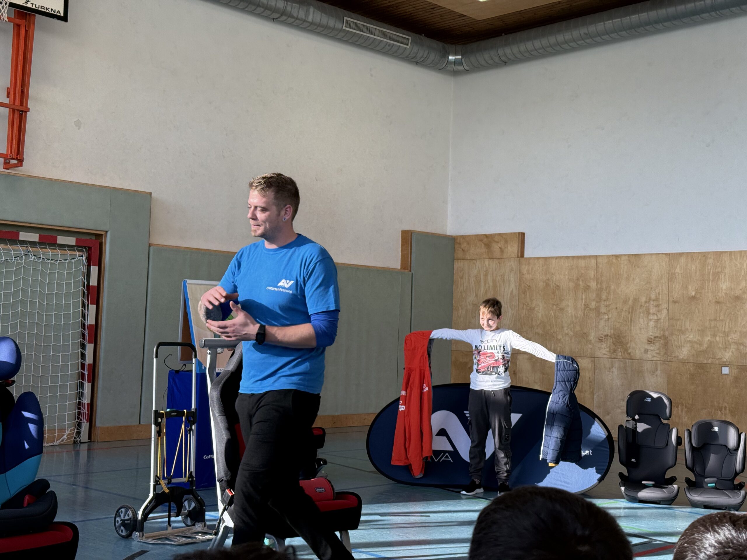 Diese Woche wurden die 3. Klassen Teil eines spannenden Vortrag. Zu welchem Thema? Richtiges Anschnallen im Auto!