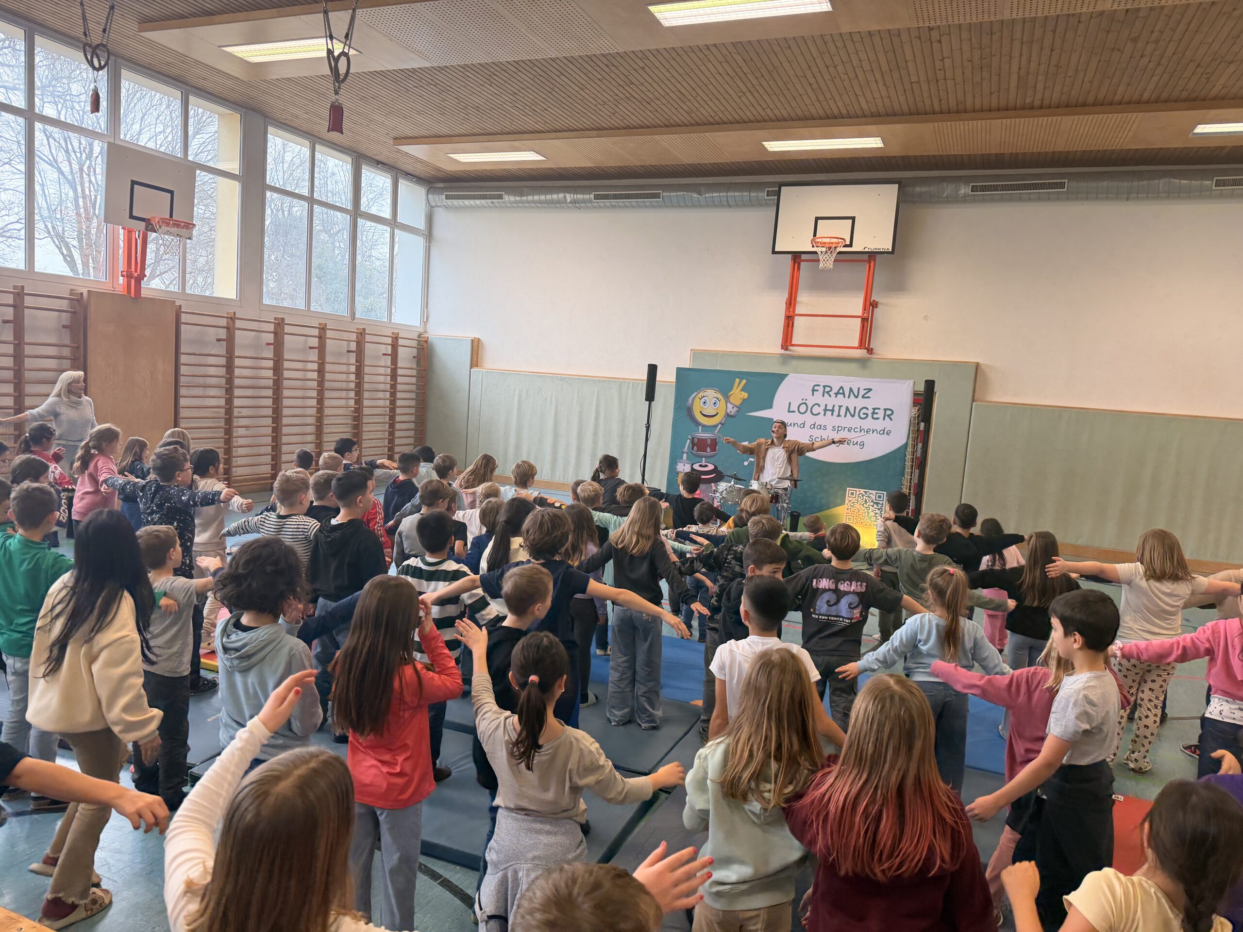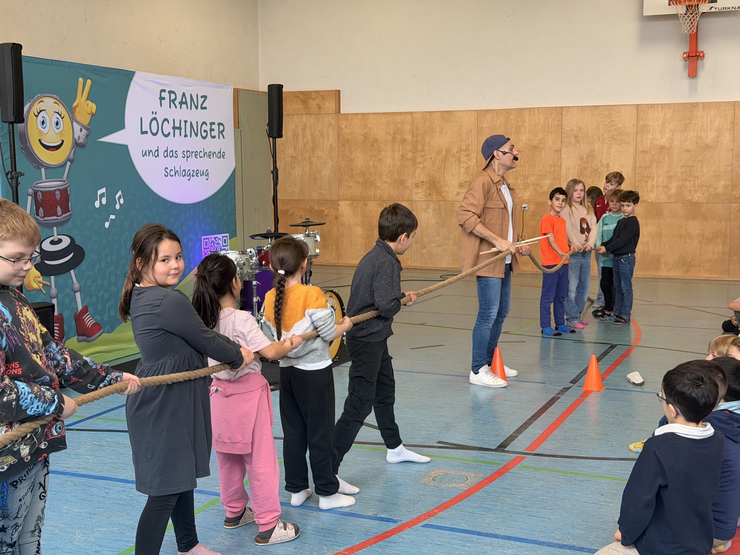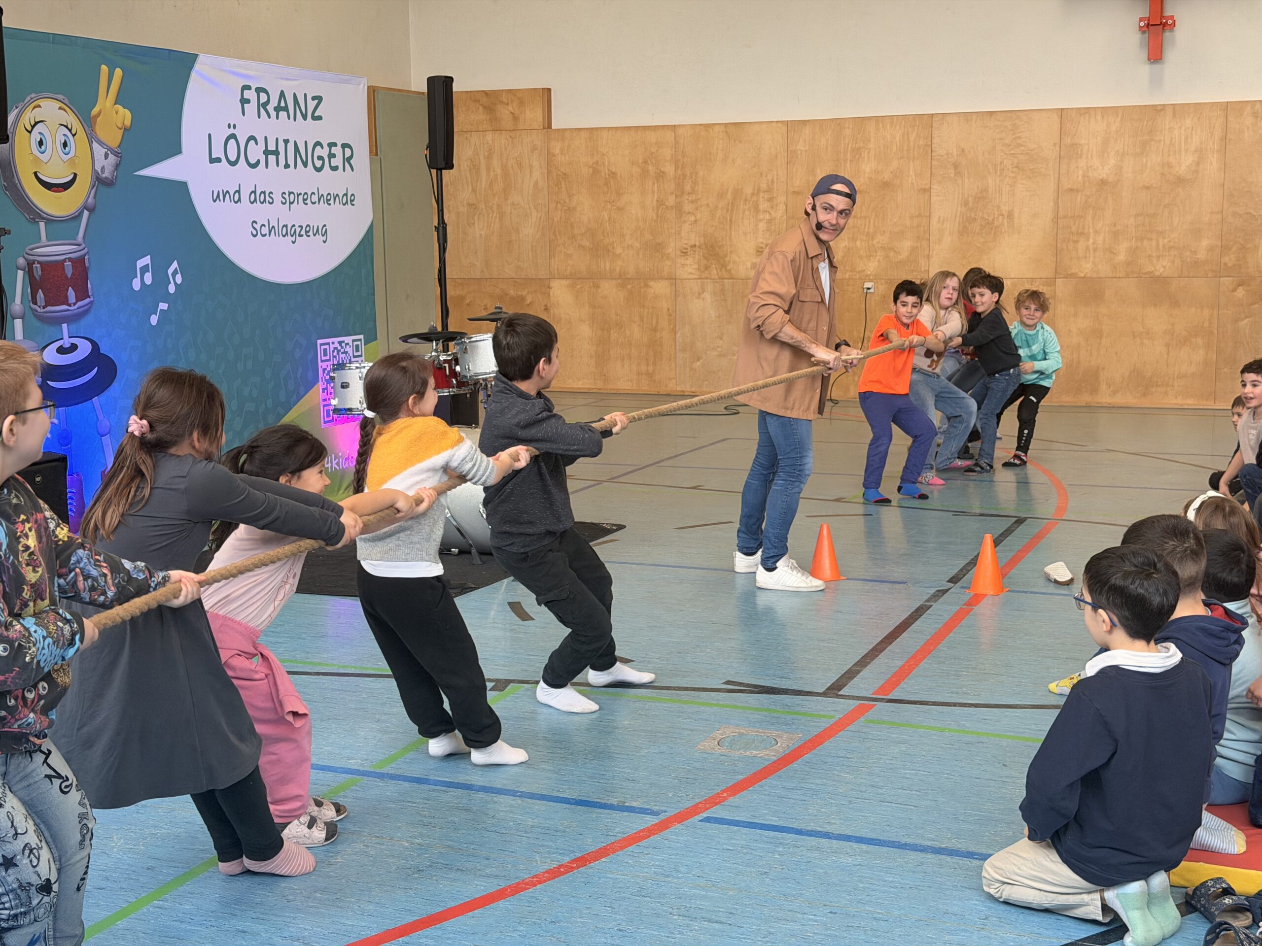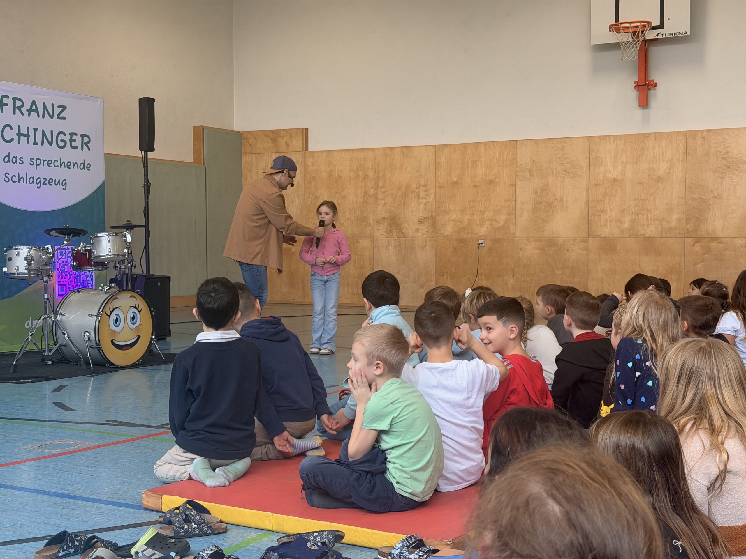Am Rosenmontag begann das bunte Faschingstreiben in der Volksschule mit dem Auftritt von Franz Löchinger und seinem sprechenden Schlagzeug namens Bella. Wie immer eine Party für die Kinder, bei der sie nicht nur dabei sein dürfen, sondern mittendrin!