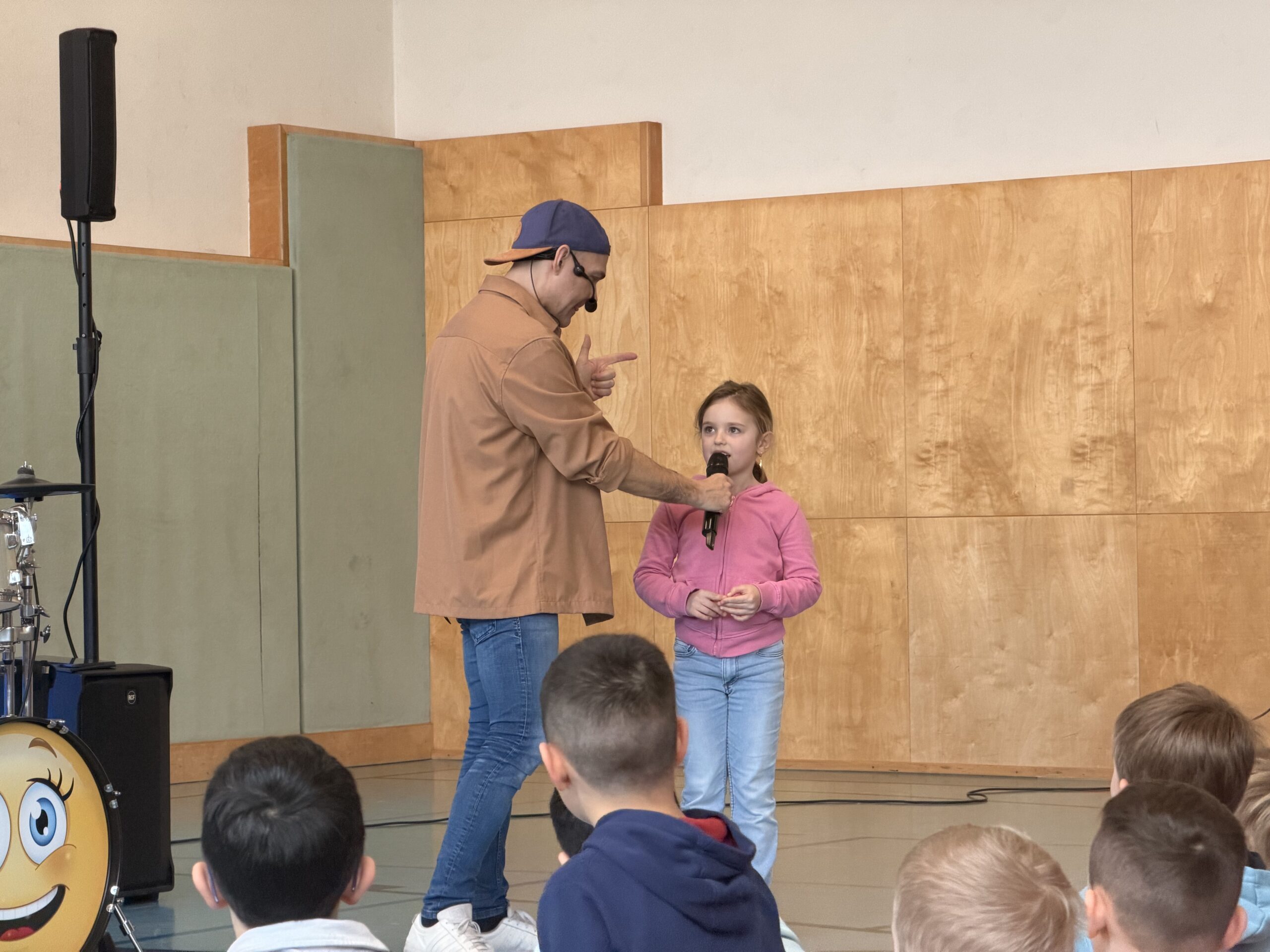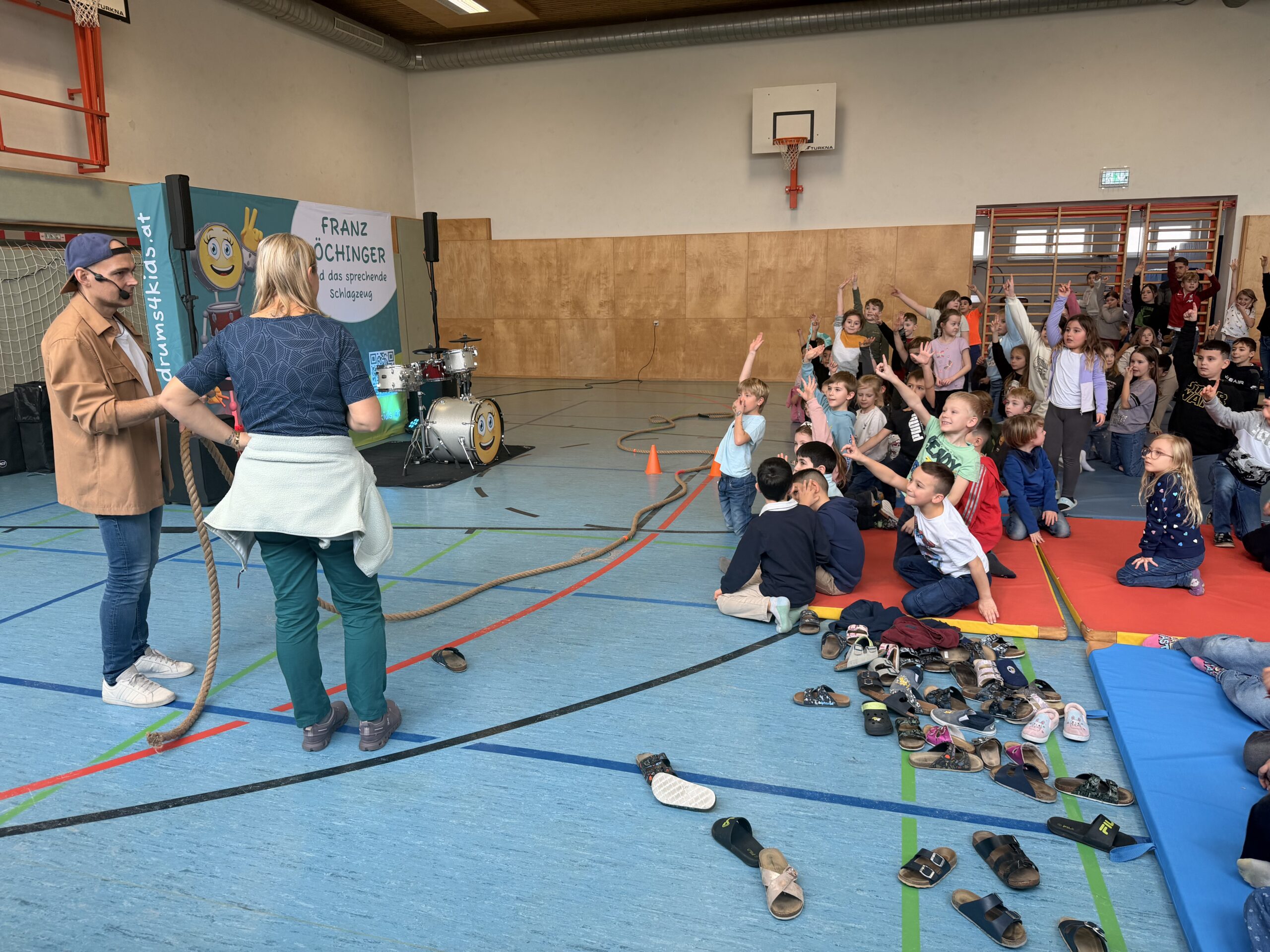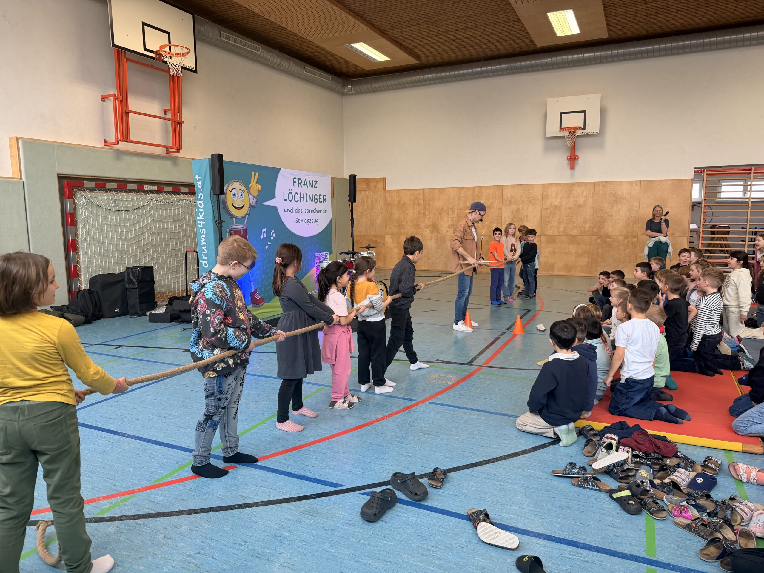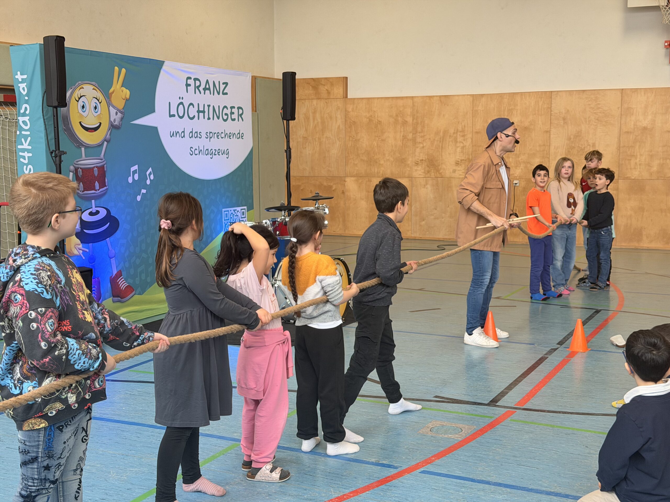 Am Rosenmontag begann das bunte Faschingstreiben in der Volksschule mit dem Auftritt von Franz Löchinger und seinem sprechenden Schlagzeug namens Bella. Wie immer eine Party für die Kinder, bei der sie nicht nur dabei sein dürfen, sondern mittendrin!