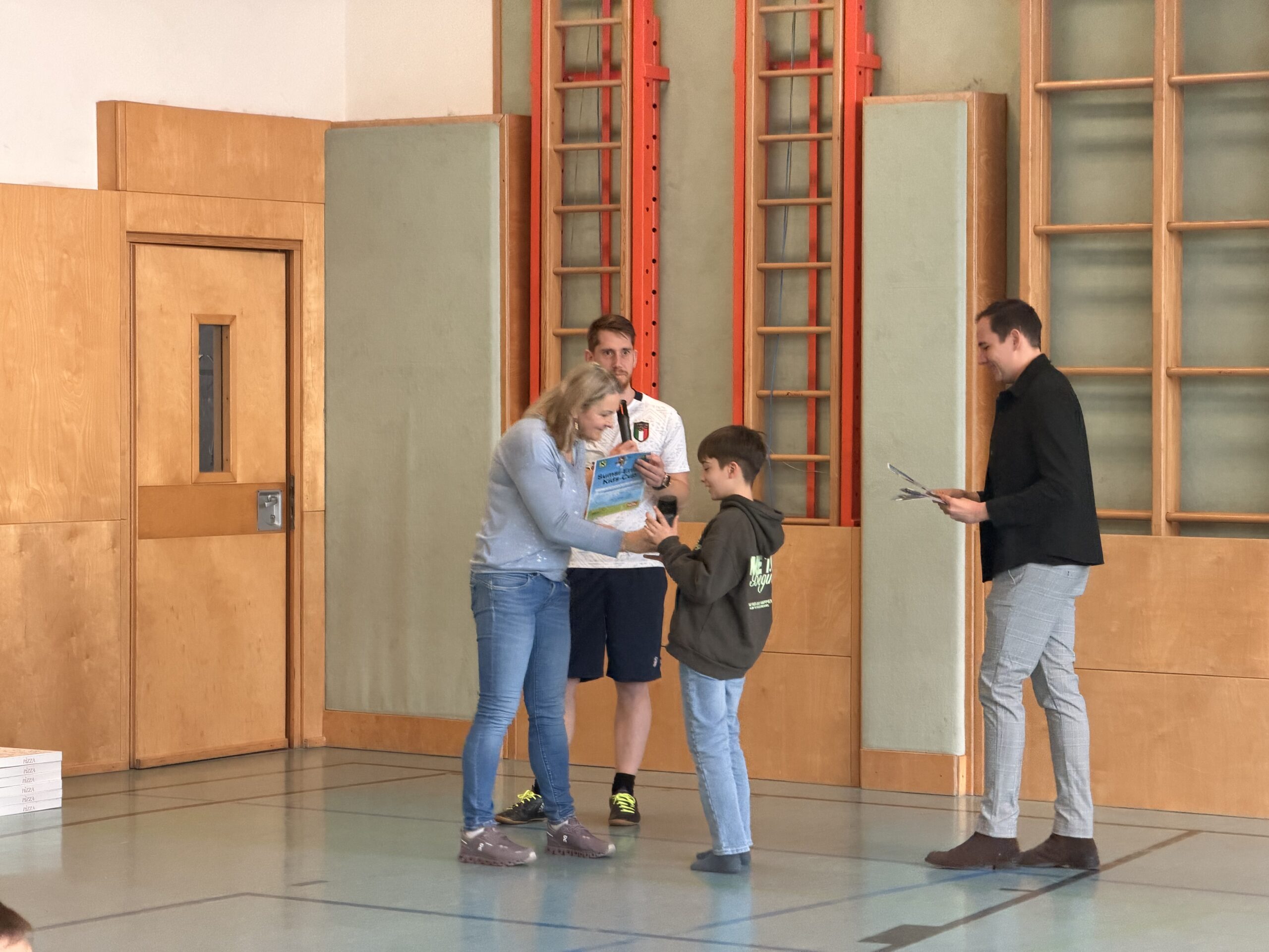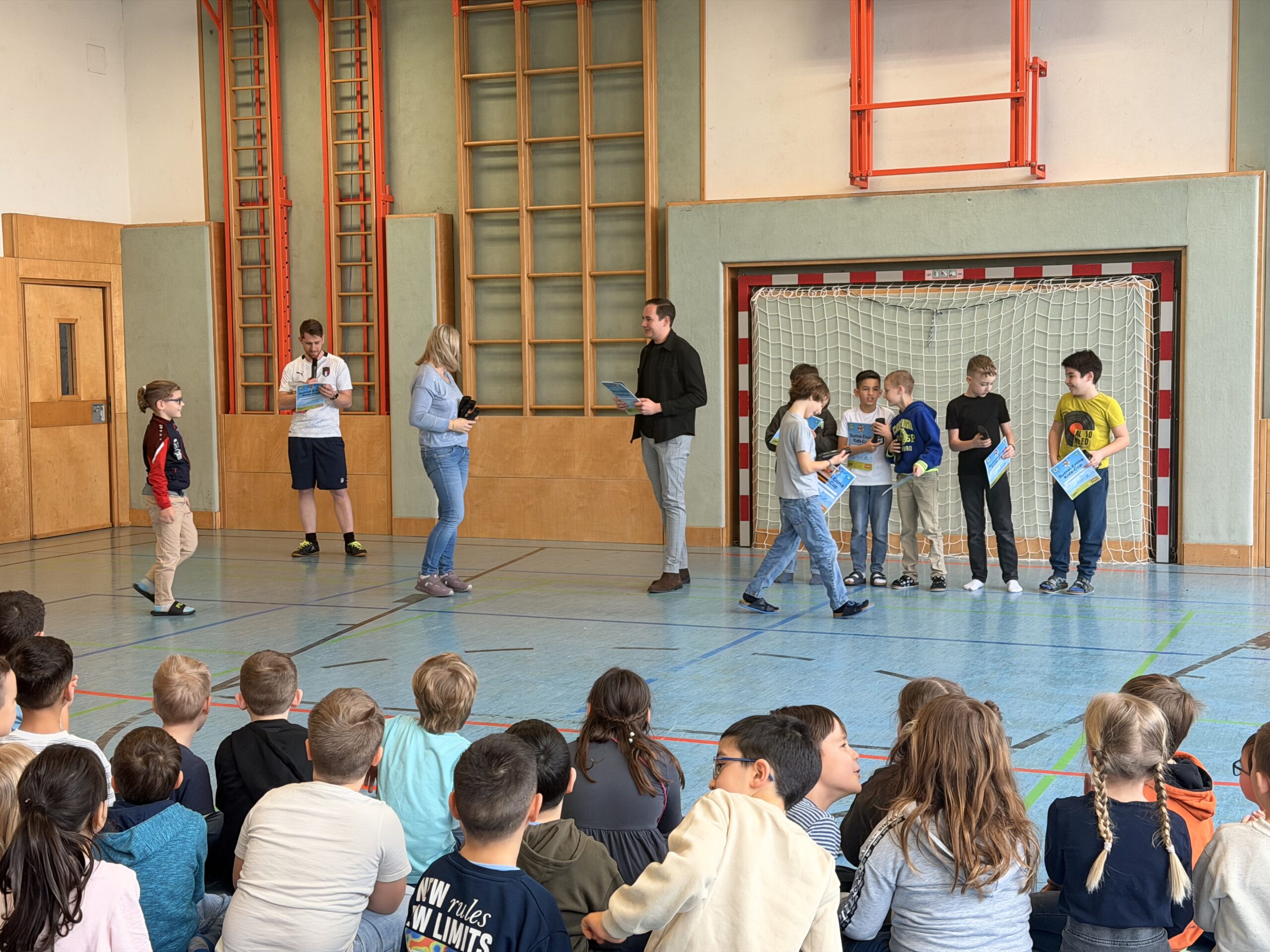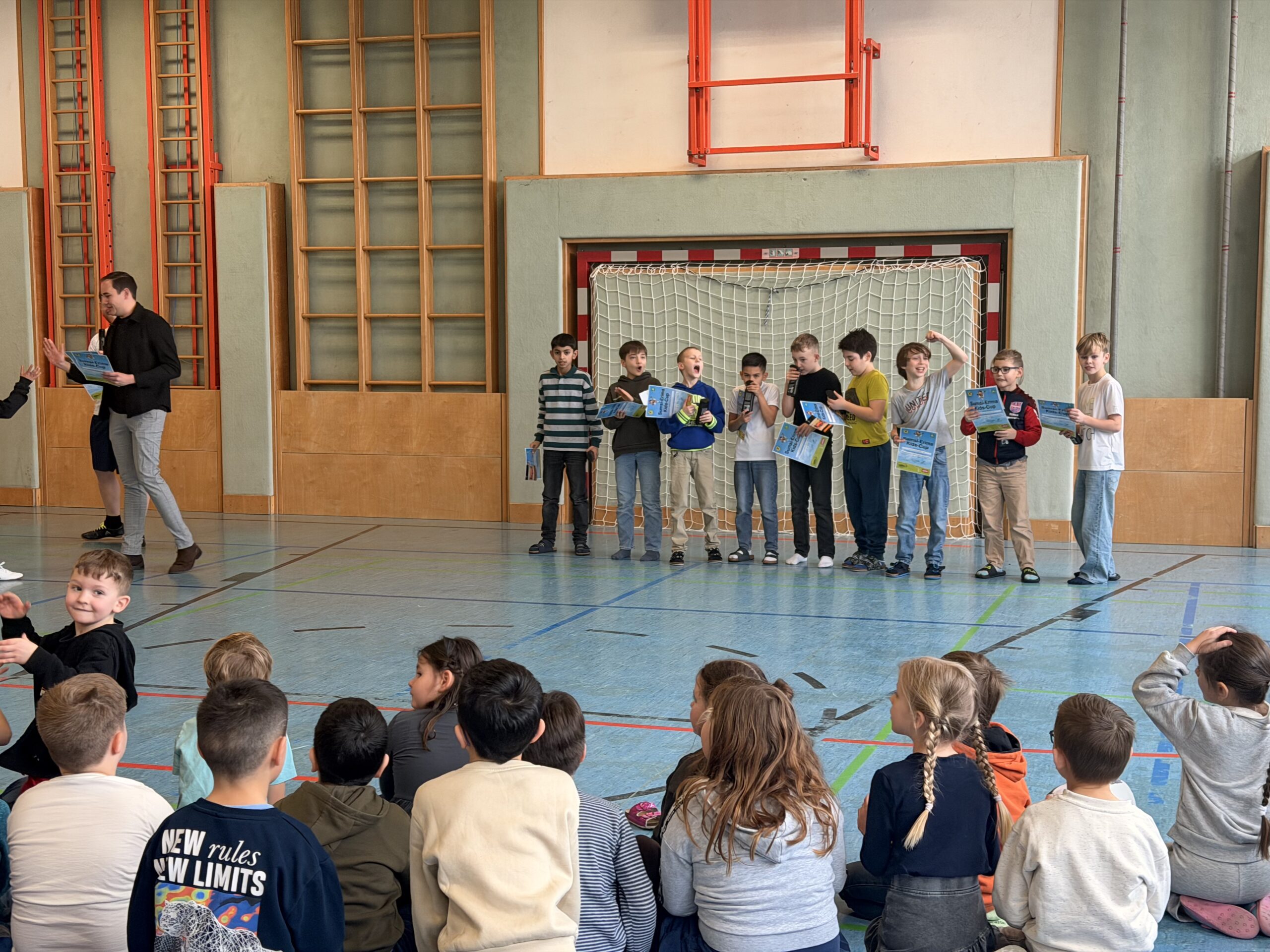 Unsere Burschen gehörten geehrt, das war sicher! Deshalb folgte am 19. Februar die Siegerehrung im Turnsaal bei der alle Schülerinnen und Schüler, Frau Direktorin Schmid und sogar unser Herr Bürgermeister unserem Team und Herrn Ebner gratulierten. Es wurde gejubelt und unsere Fußballer wurden gebührend gefeiert!