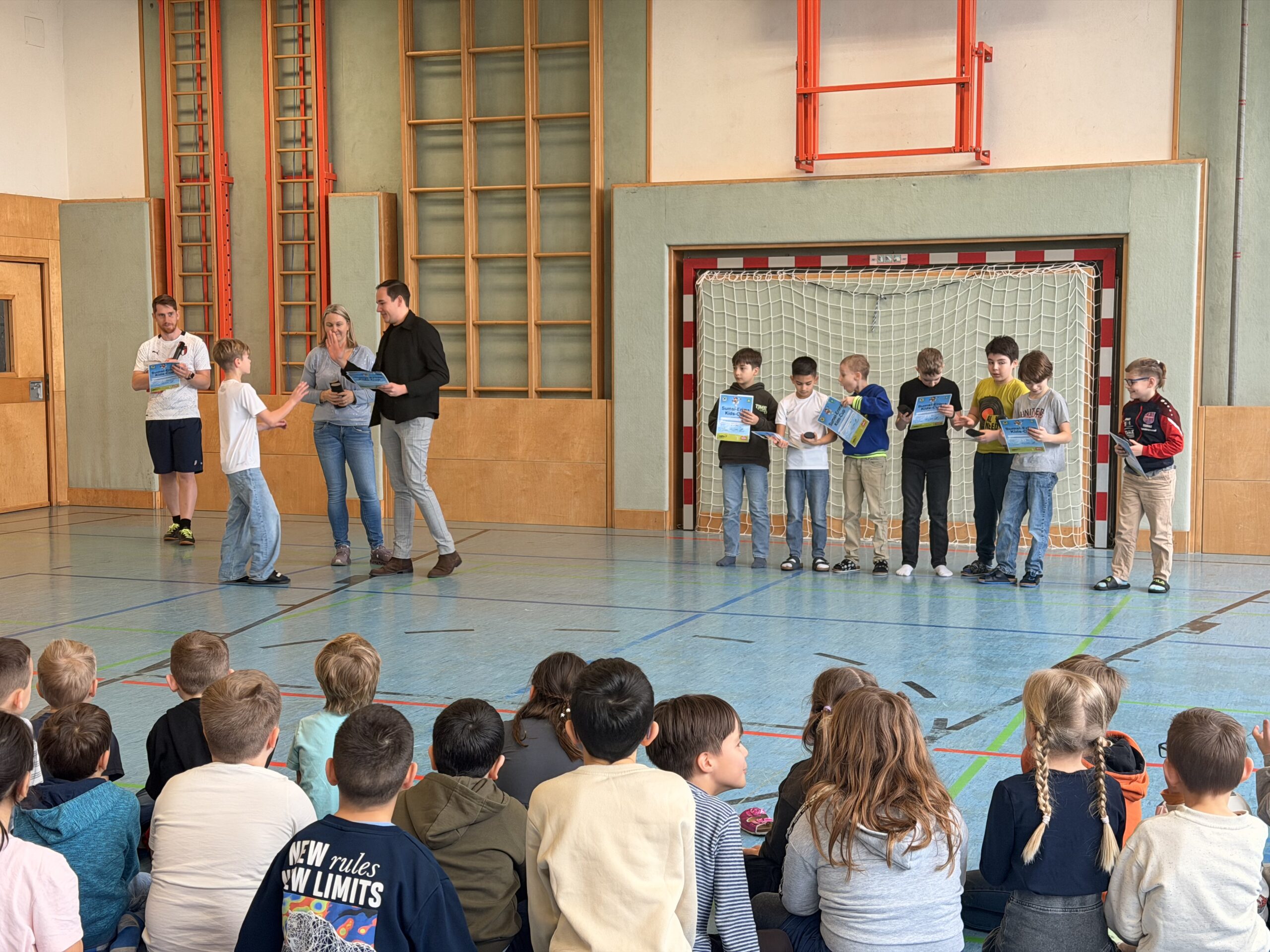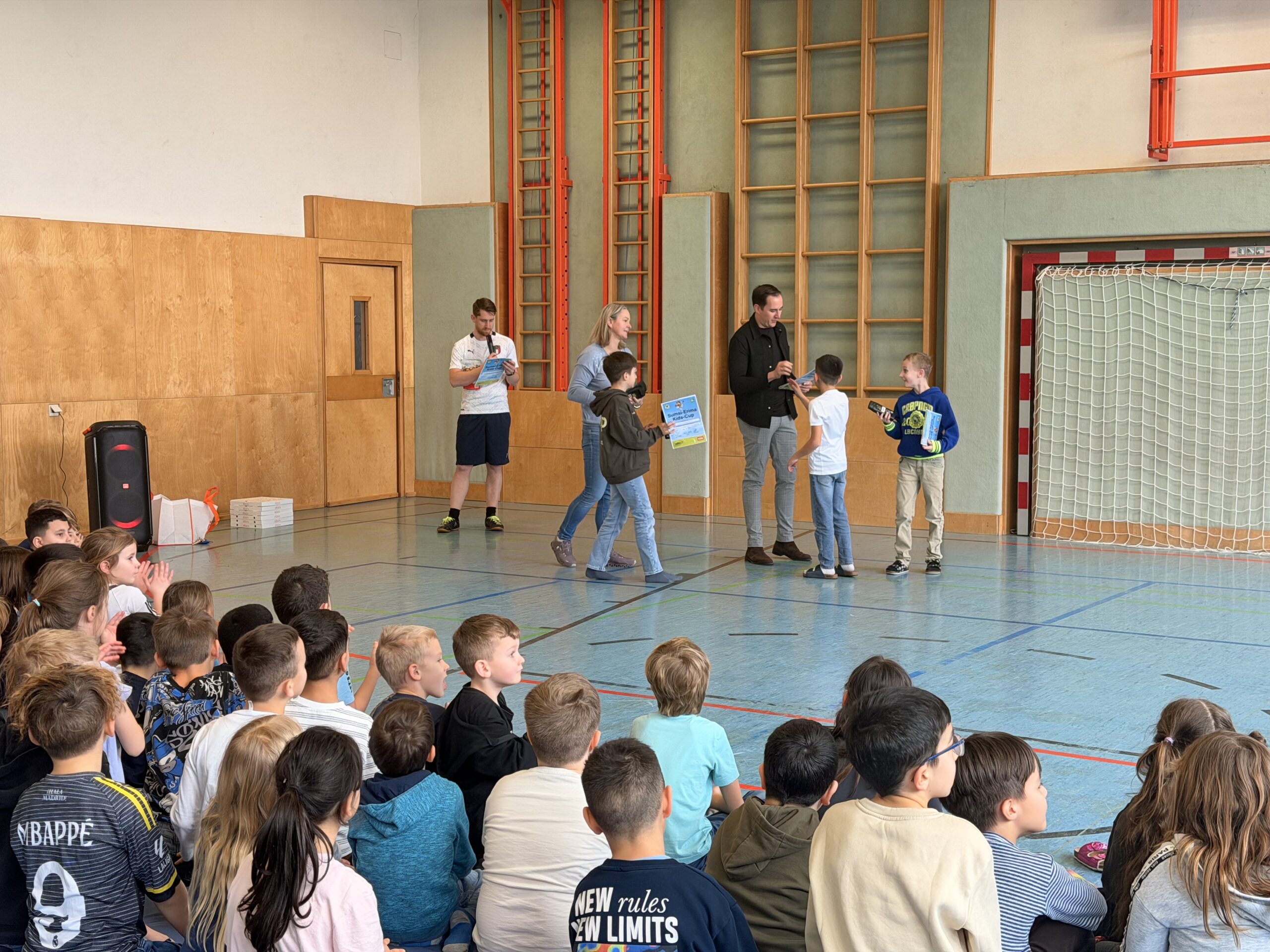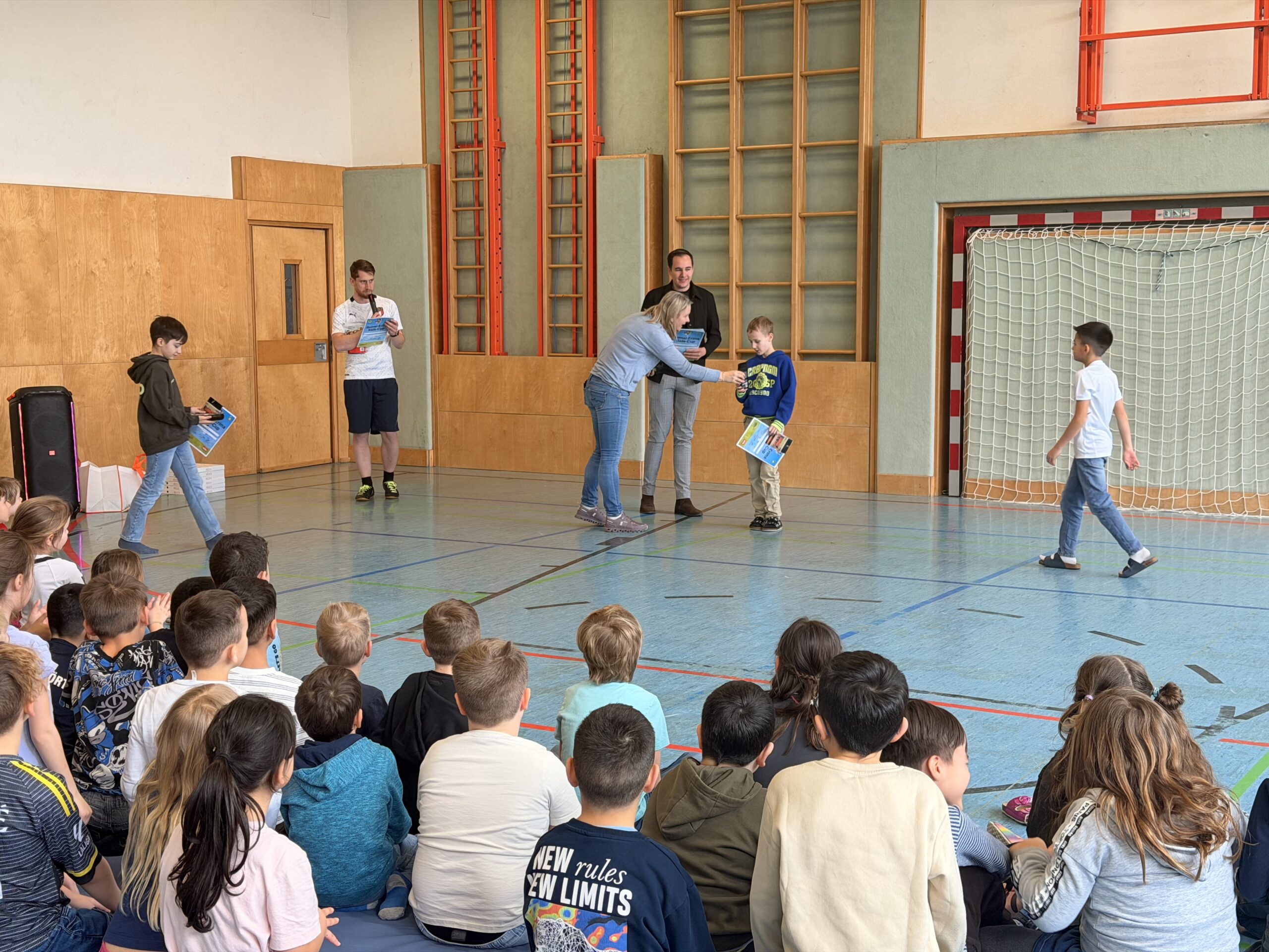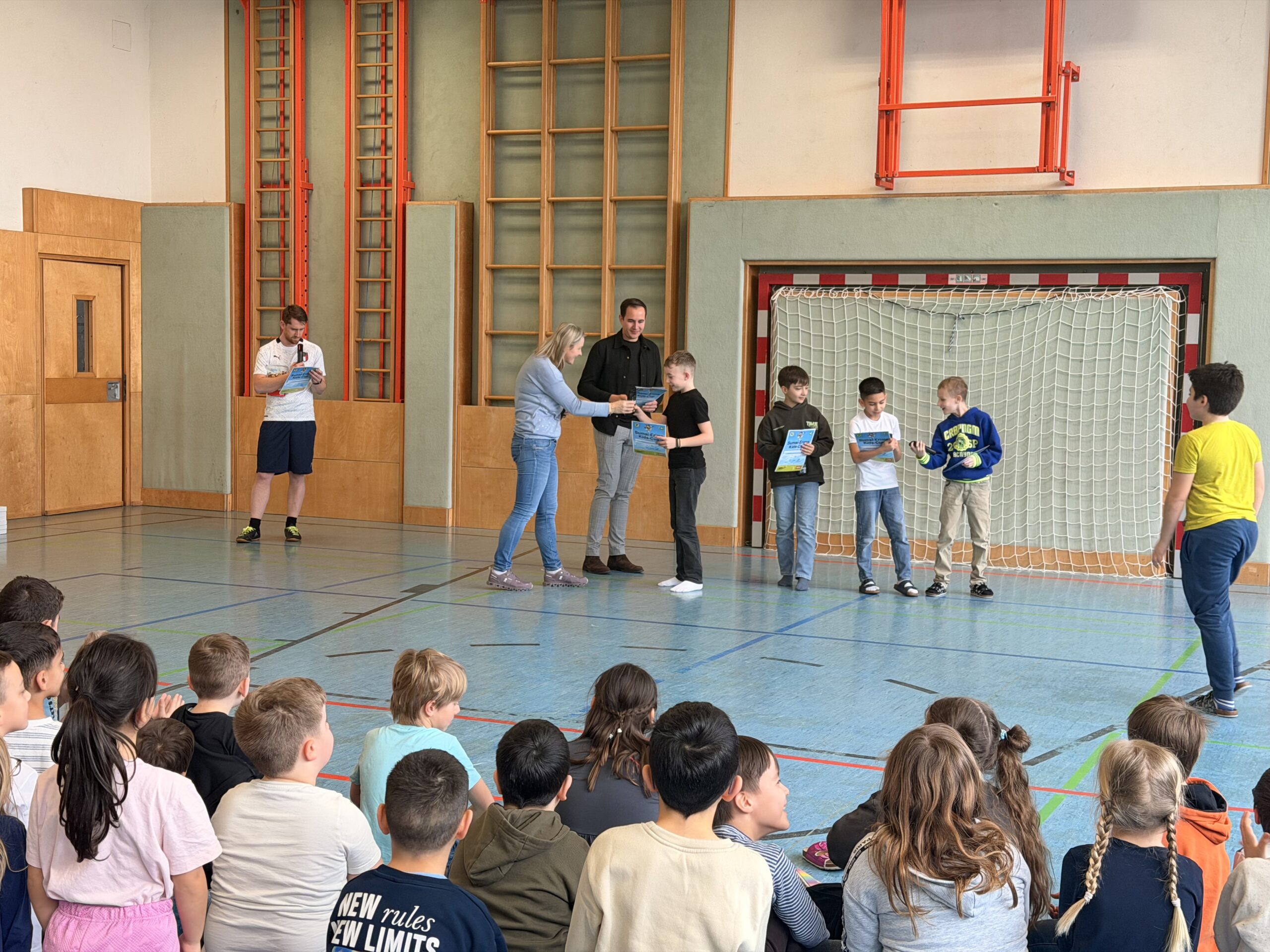 Unsere Burschen gehörten geehrt, das war sicher! Deshalb folgte am 19. Februar die Siegerehrung im Turnsaal bei der alle Schülerinnen und Schüler, Frau Direktorin Schmid und sogar unser Herr Bürgermeister unserem Team und Herrn Ebner gratulierten. Es wurde gejubelt und unsere Fußballer wurden gebührend gefeiert!